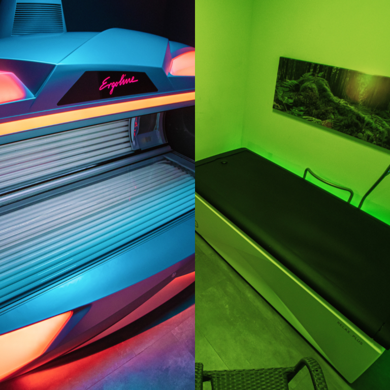 Gönnt euch einen Kurzurlaub auf unserem hochmodernen Solarium von Ergoline oder eine Auszeit auf unserer orthopädischen Wassermassageliege.